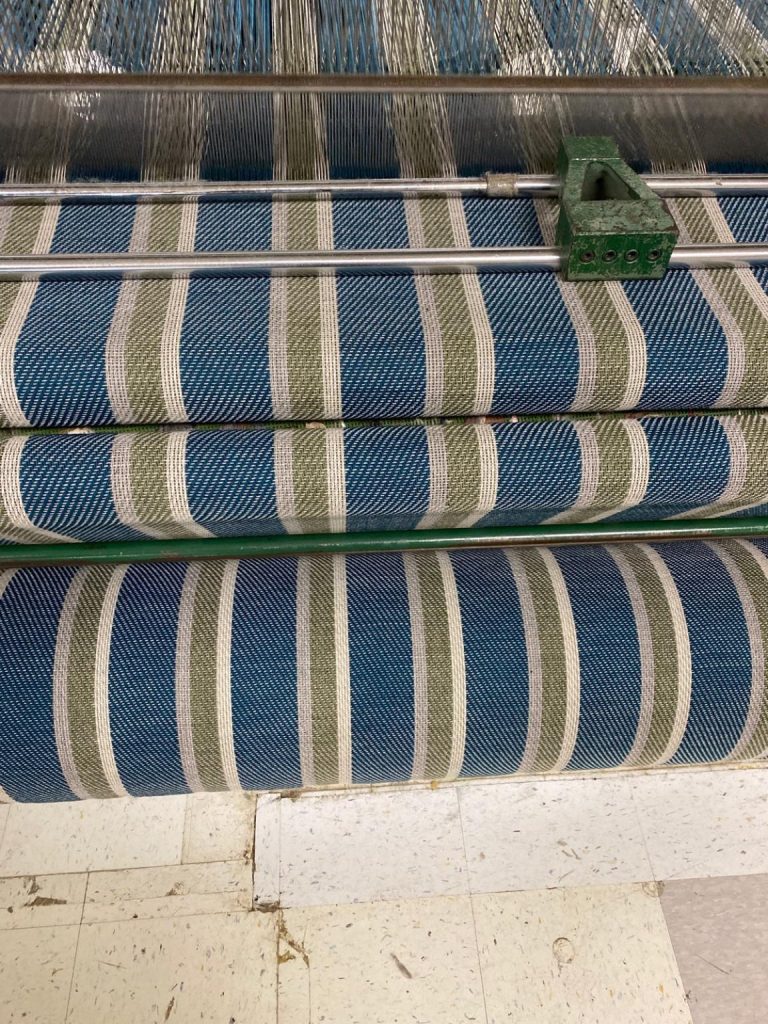 Once the finished yarn reaches the weaving facility, the weaver readies the machine by warping the loom with 100 cones of yarn, which is a very time intensive process. Once completed, the machine is now ready to begin weaving beautiful cloth and fine fabrics under the watchful eye of the weave master. When the fabric is woven, it is then placed on rolls and prepared for finishing.