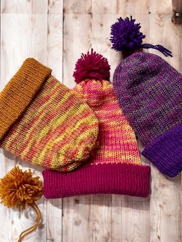 Alpaca merino house made beanies are available now in two sizes, three colorways and with or without a pom-pom.