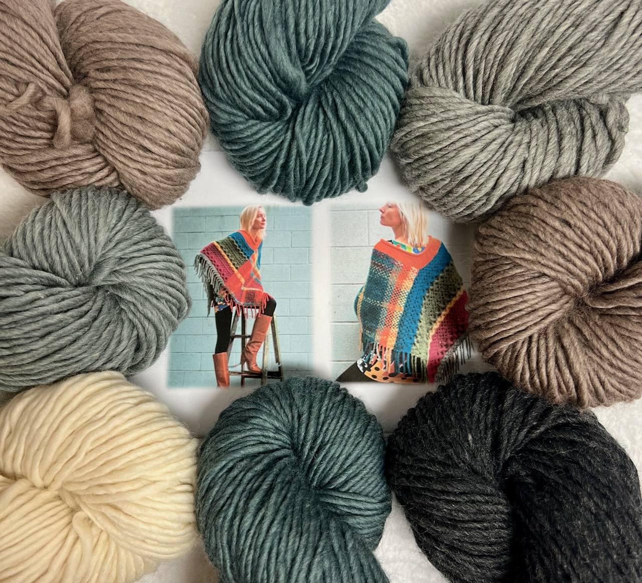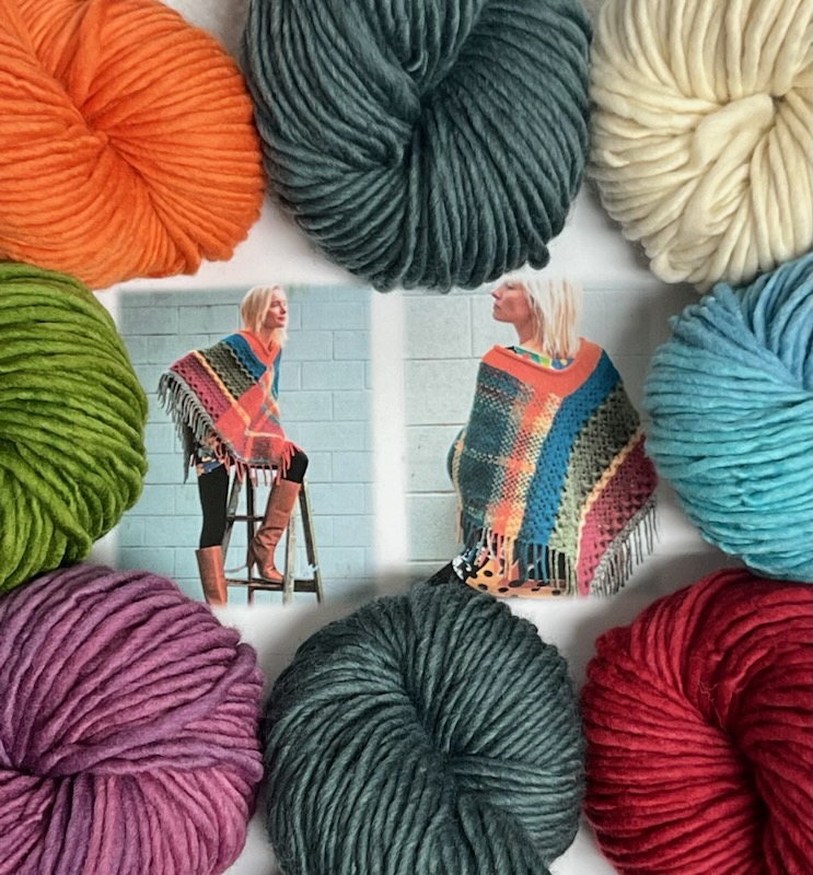 The Imperial Plaid Poncho is fun to knit and even more fun to wear! The loft of this bulky merino allows your poncho to take shape in a snap and no worries, this is NOT an advanced knit! In fact, working through the pattern step-by-step, will reveal a series of simple techniques. Which then combine to ceate this striking garment.