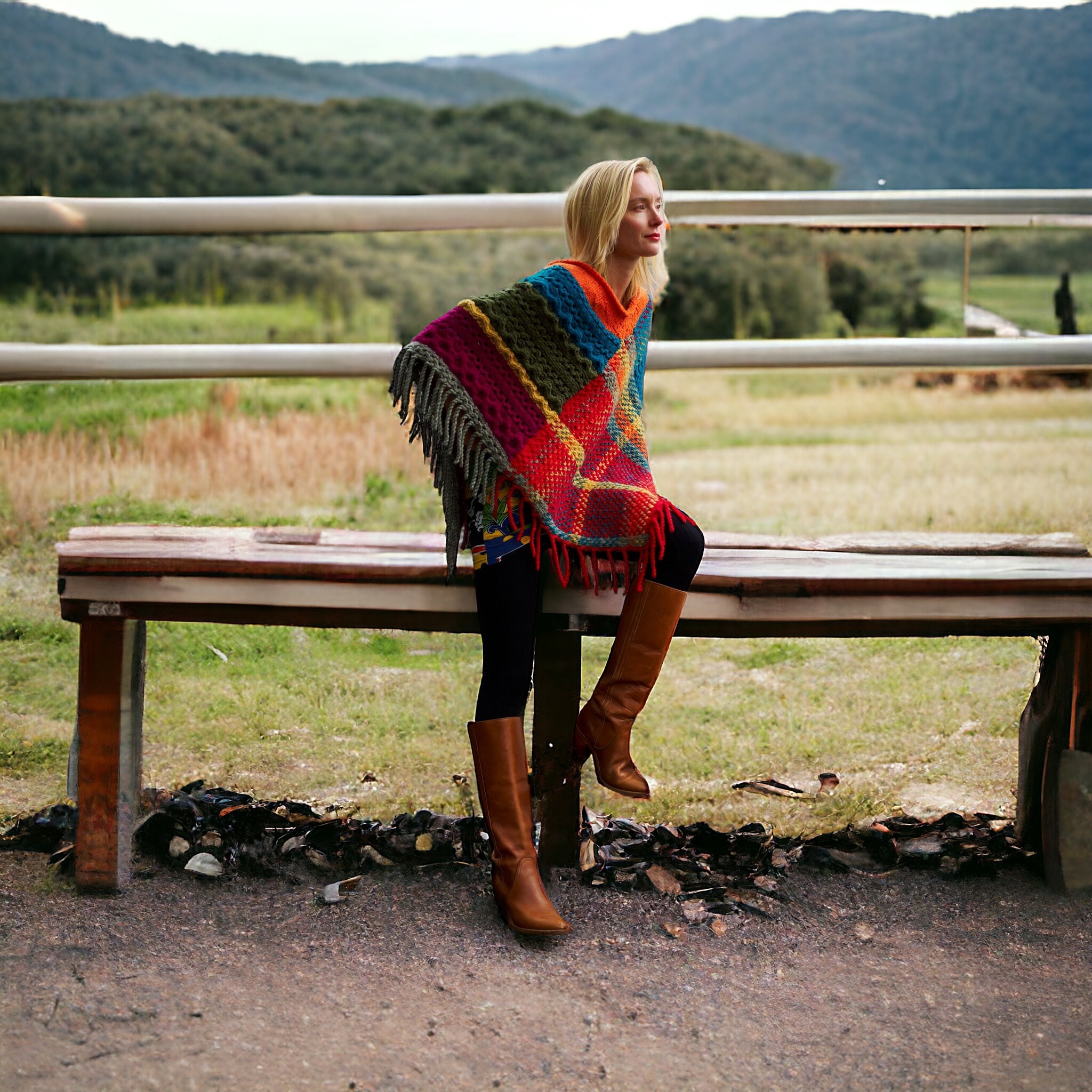 The Imperial Plaid Poncho is not an advanced knit! Do not be afraid to try it! You got this! 100% rambouillet wool, makes this poncho soft and warm. The colors will make this a go to wardrobe essential. 100% rambouillet wool is warm, cozy soft and the colors delightful.
