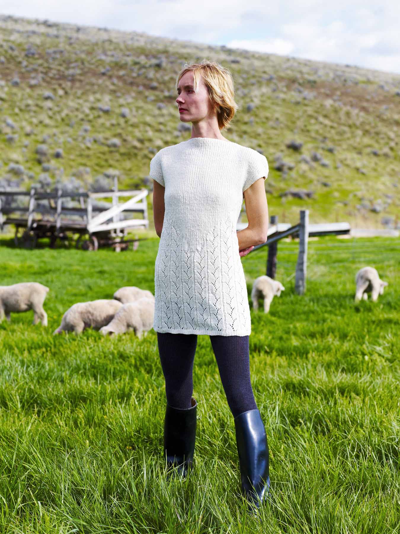 The Sunburst Shirt Dress is a versatile piece that can be worn alone as an elegant short dress or as a stylish tunic over leggings. Knitted up with a beautiful combination of a lace and 1×1 rib, this design features a boat neckline in front with deep dive neckline in the back. Finished with box pleats on short capped sleeves. Offered in sizes X-Small to XX-Large, your kit will include 4 to 6 skeins of Tracie Too 100% Merino yarn, in your chosen shade, an IY collection pattern and lightweight project bag.