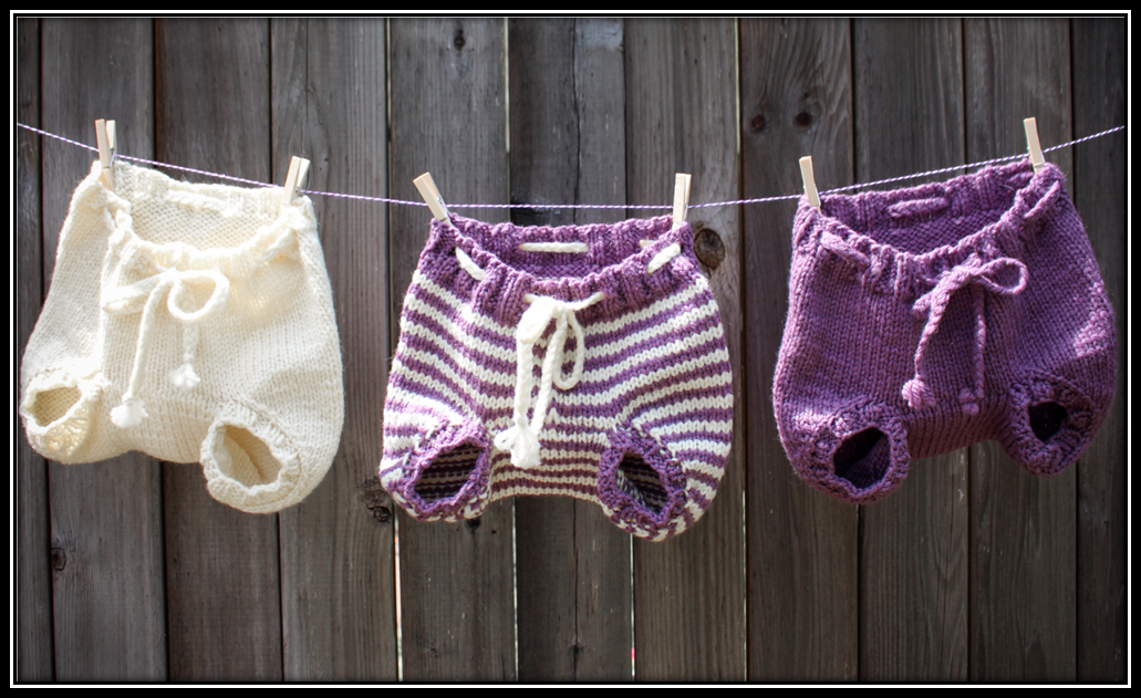 These soft and durable, natural fiber diaper soakers are a perfect addition to any active baby’s wardrobe. With ribbed trim and a stockinette body, the knit fabric will stretch as our baby grows, making the most of your time, talents and wool! Designed by the very talented Tanis Gray.
