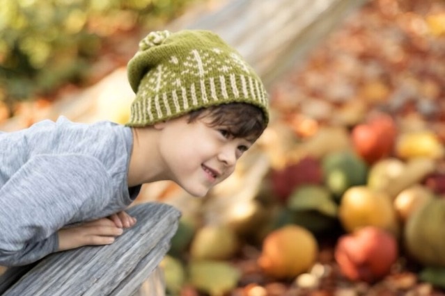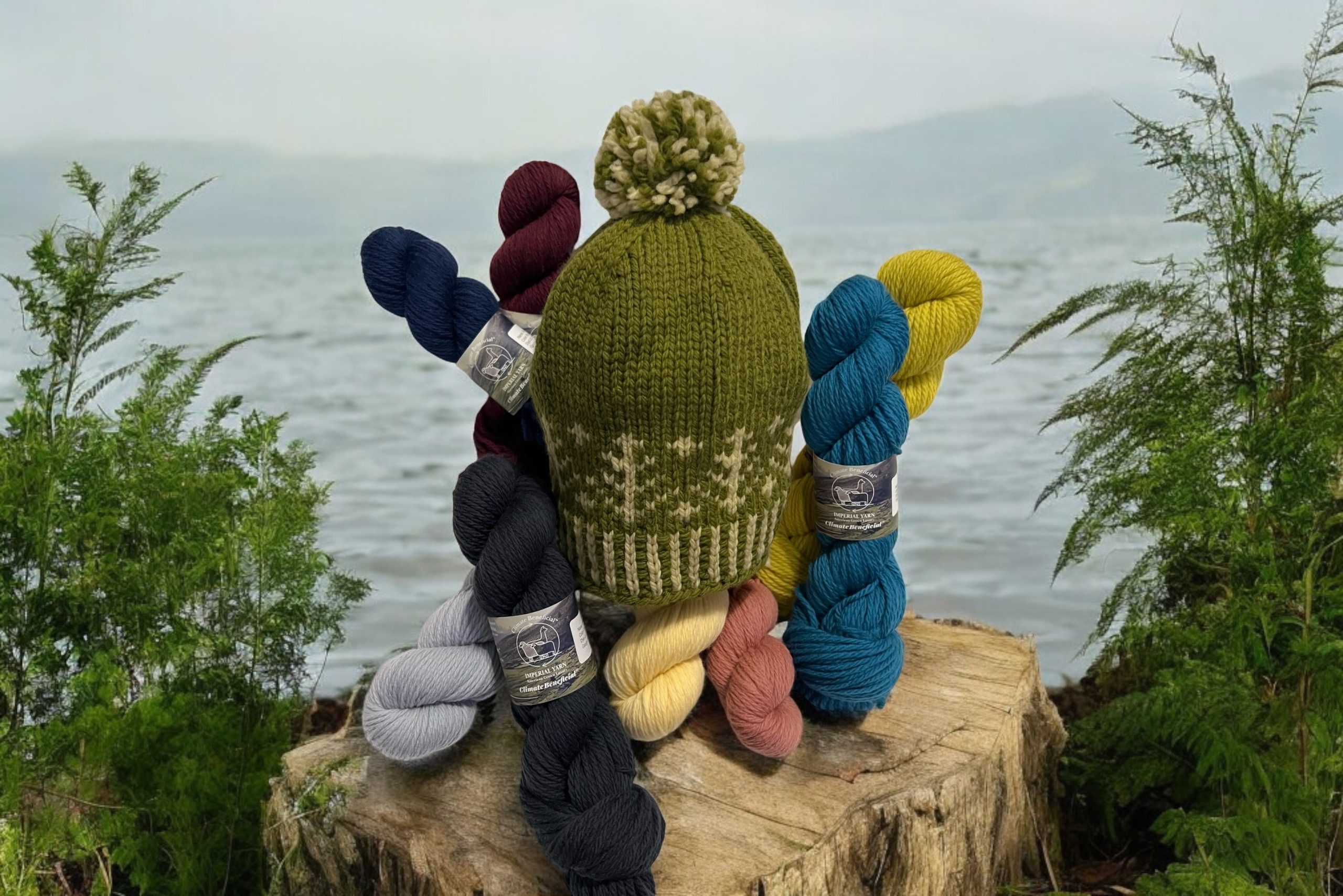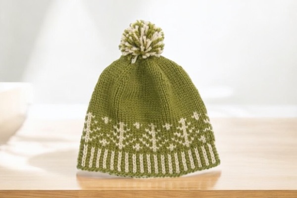 The charming color-work design on the Whimsey Hat makes it a treasured favorite among all ages! Made From 2 Skeins of our Willamette, worsted yarn. This 100% wool produces a soft fabric with beautiful stitch definition and generous stretch. Experienced knitters will love the unique vertically striped brim and folk-inspired evergreen motifs. The optional pompom and 16 color options make it easy to customize this hat to your style. Designed by Tanis Gray.