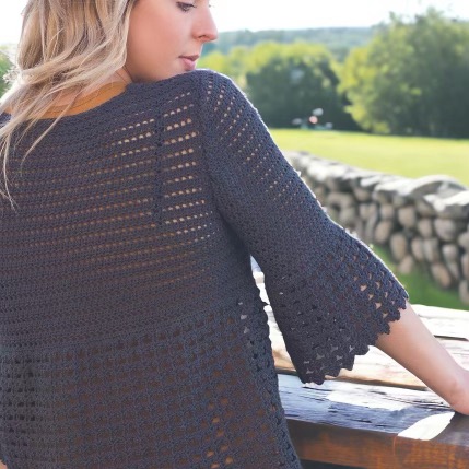 The Spring Equinox Bolero kit is a fun and versatile crocheted piece, perfect for Spring and cool Summer evenings. Patterned in both, a close fitting short bolero (pictured Right) and a classic fitting longer cardigan (pictured left) in sizes Small through X-Large. Don’t worry, there is no need to decide now, your kit includes enough yarn for either length…just choose your color!