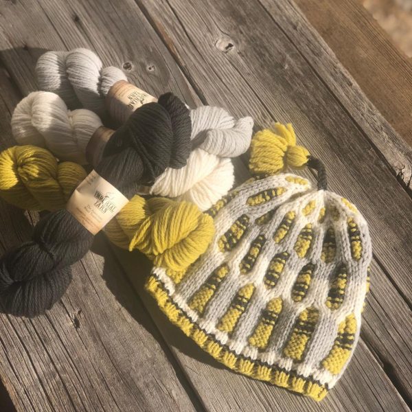 Each kit comes with the pattern, a project bag and 4 skeins of our worsted weight wool yarn Willamette, with 3 bright and bold options.