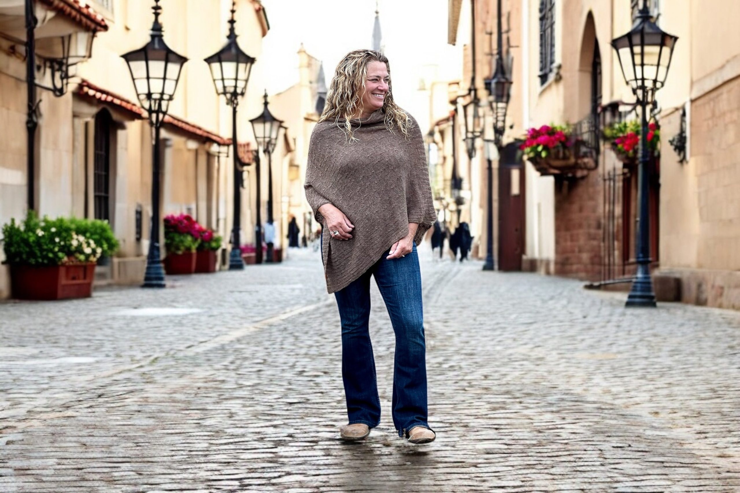 The best quality of this poncho is its light weight. This delicate light weight cable poncho will become a go to fashion piece in your wardrobe.