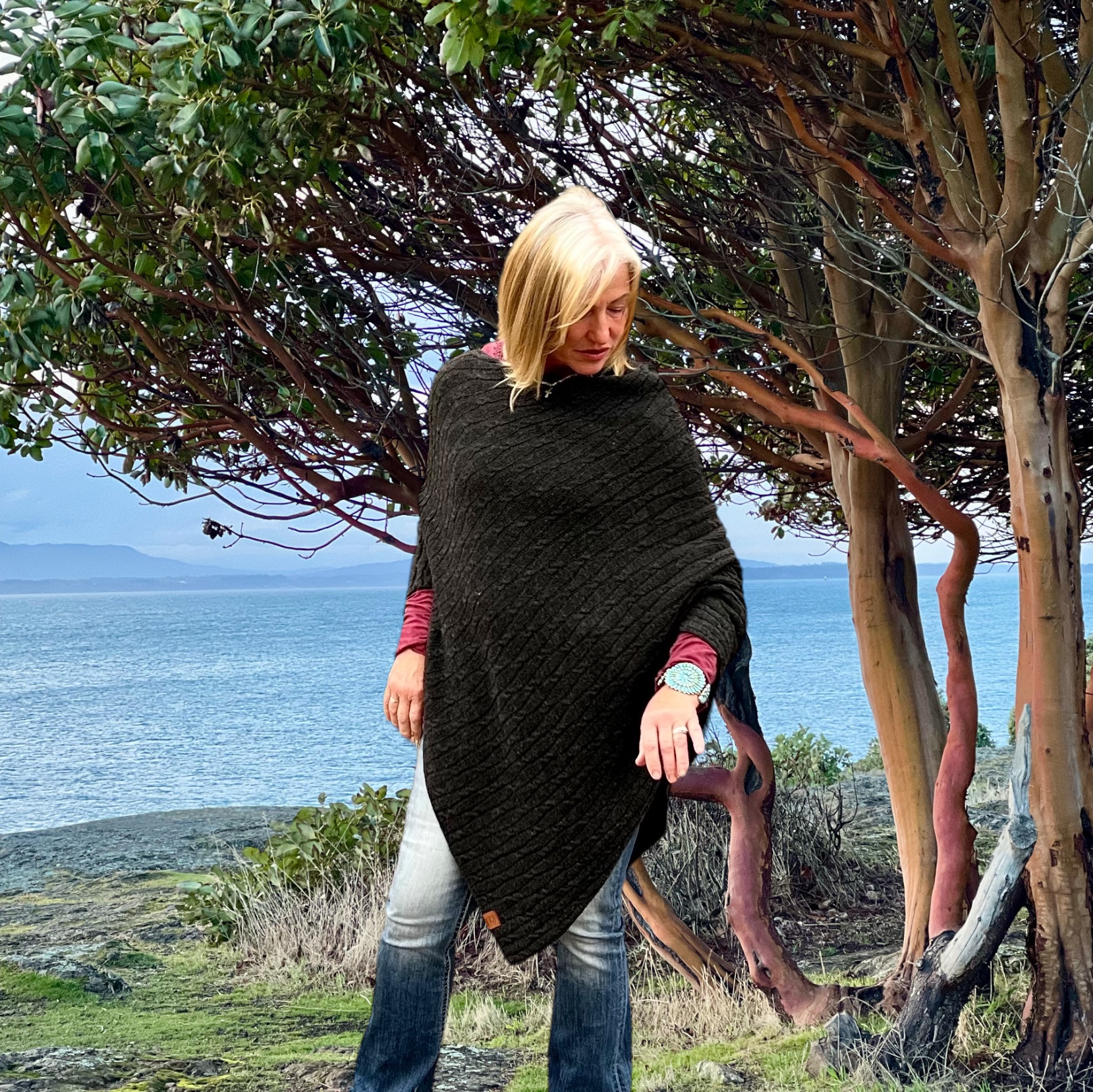 This beautiful, cabled poncho weighs in at just under 10 Oz. The precise blend of alpaca and merino, Pacarinoâ„¢ is the perfect marriage of fiber, achieving fluidity and motion with the luster and drape that only natural fiber can achieve.
