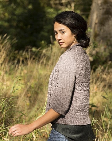 This cardigan has a very unique, yet exceedingly simple to knit design. Mitered shaping and short-row sleeve caps make this an interesting knit and a gorgeous finished piece.