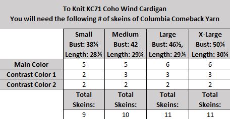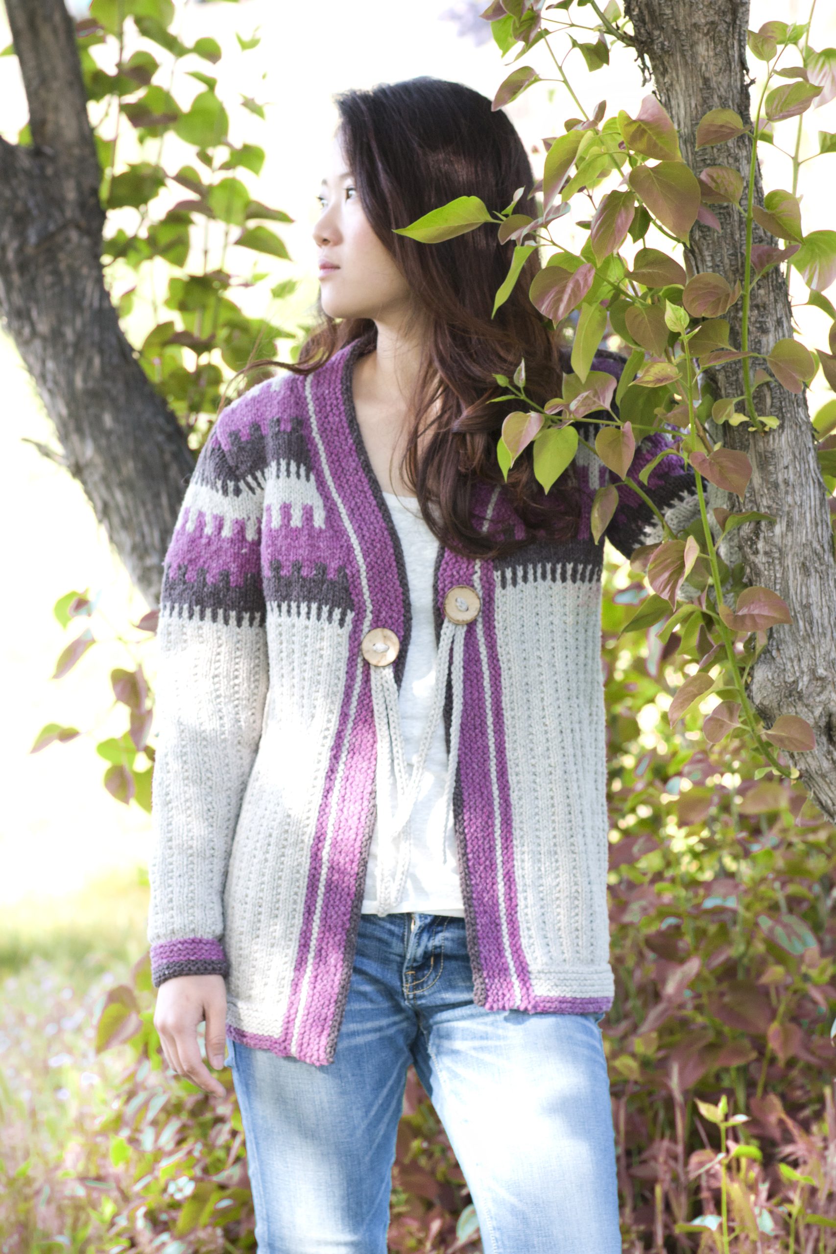 The one of a kind Coho Wind Cardigan combines texture and colorwork, with an all-over Narrow Rib pattern subtly complimenting the bold 3-color Fair-Isle design. A few rows of squishy soft Garter Stitch gives the front bands and bottom edge a comfortable fit and professional look. Two buttons are attached with simple knitted ties to use as the cardigan’s closure. This is a gorgeous project any intermediate knitter will love!