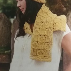 Needles:Â Scarf, US size 10 (6 mm) needles or size to obtain gauge. Hat, US size 9 (5.5 mm) 16″ (40 cm) long circular needle and set of 4 or 5 double-pointed needles or size to obtain gauge.