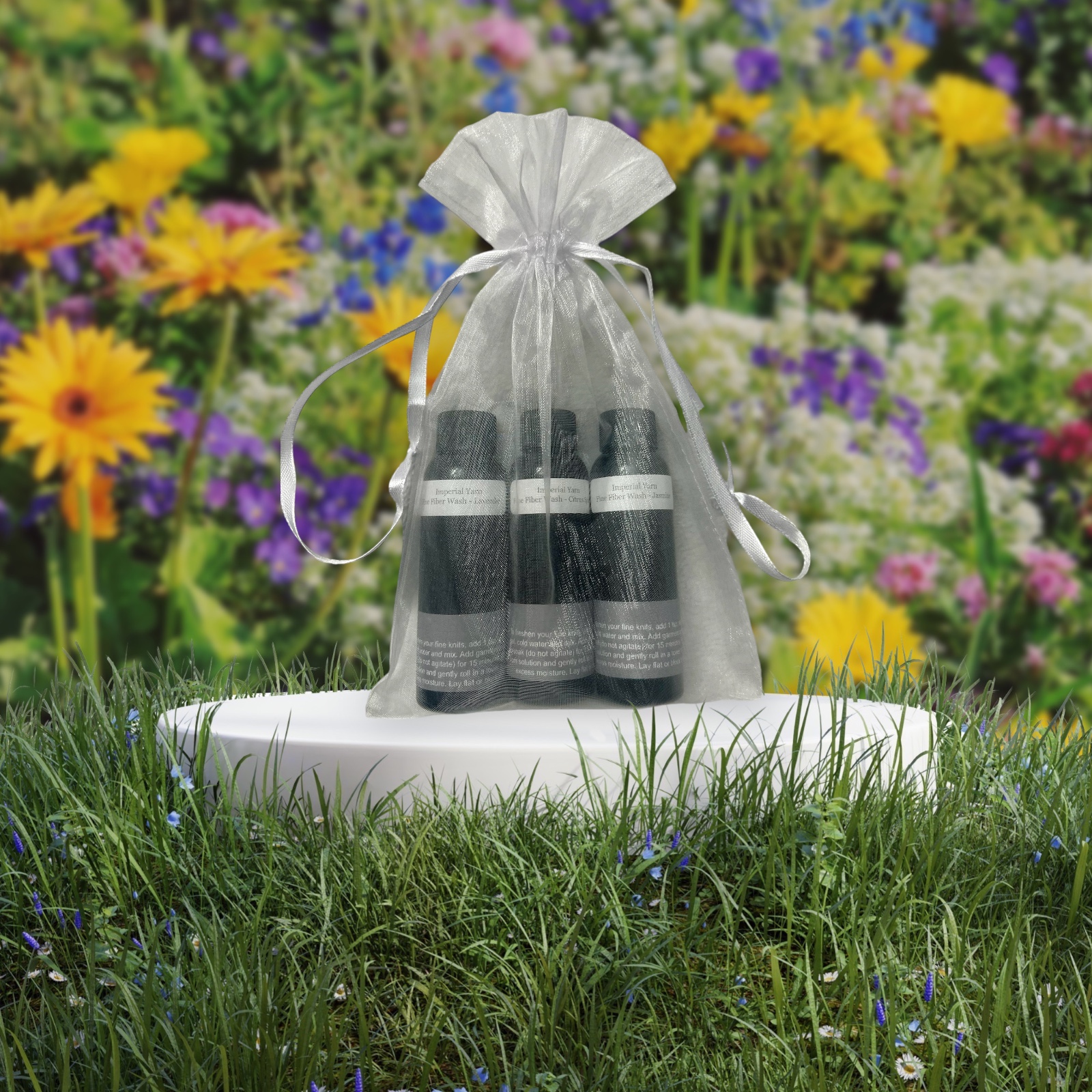 The scents are Relaxing hint of lavender, citrus splash and unscented. Sample them all, choose the Small Sampler and receive 1 Small bottle of each scent, packaged and topped with a bow, perfect for gift-giving!